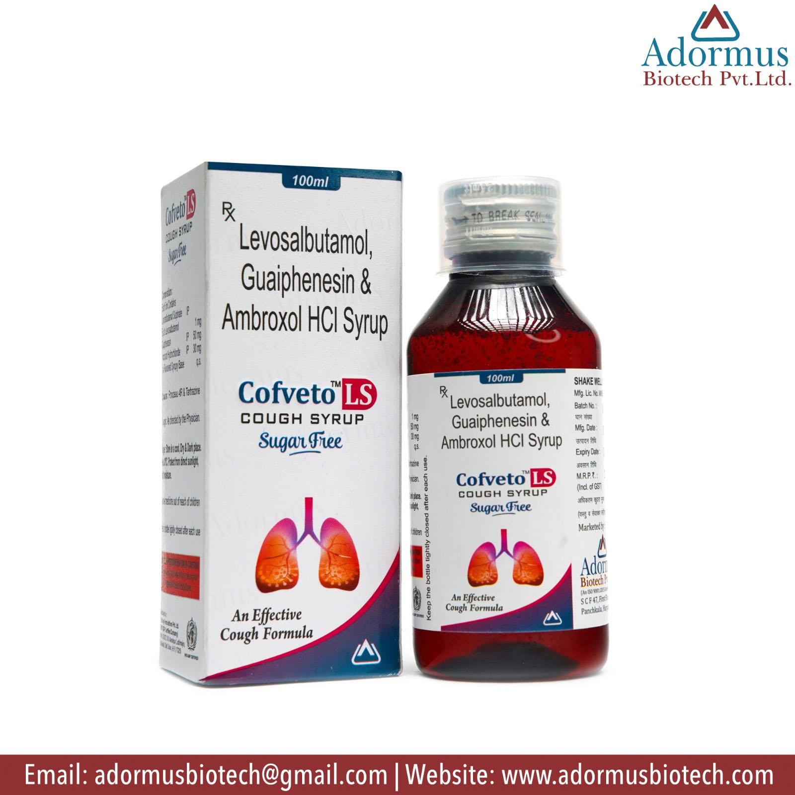 Description: Levosalbutamol, Ambroxol, and Guaifenesin syrup is used to relieve cough and chest congestion by loosening mucus and facilitating its expulsion, making breathing easier for individuals with respiratory conditions such as bronchitis and asthma.